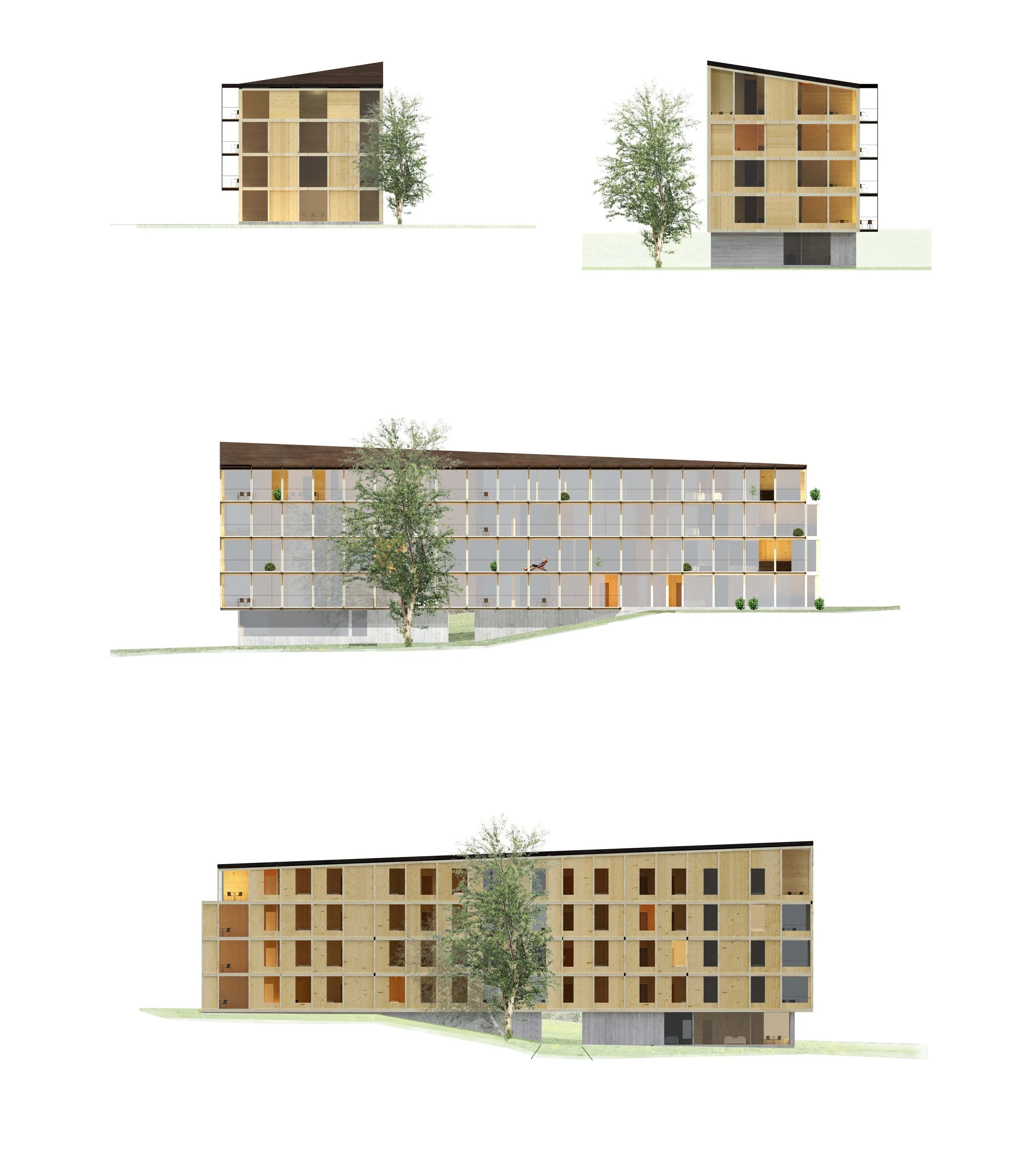 Den vifteformede bebyggelsen understreker landskapsformasjonen, åpner seg mot utsikten og lager en gate mot eksisterende bebyggelse.